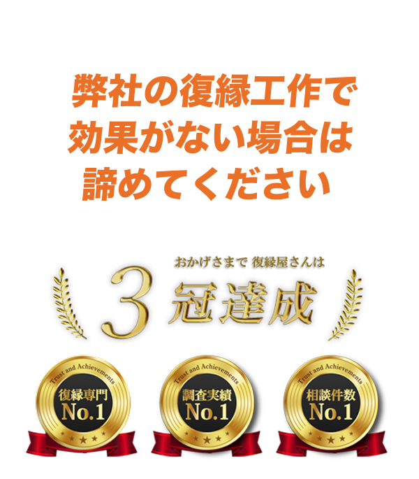 - 依頼することで、復縁できるかどうかについて事実を申し上げると、確かに100%の保証はありません。